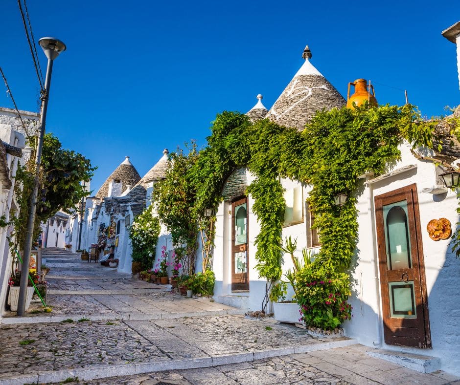 - Alberobello – Trulli Town: Alberobello is renowned for its trulli, unique white, cone-roofed stone houses. The Trulli District is a UNESCO World Heritage Site and a symbol of Puglia.