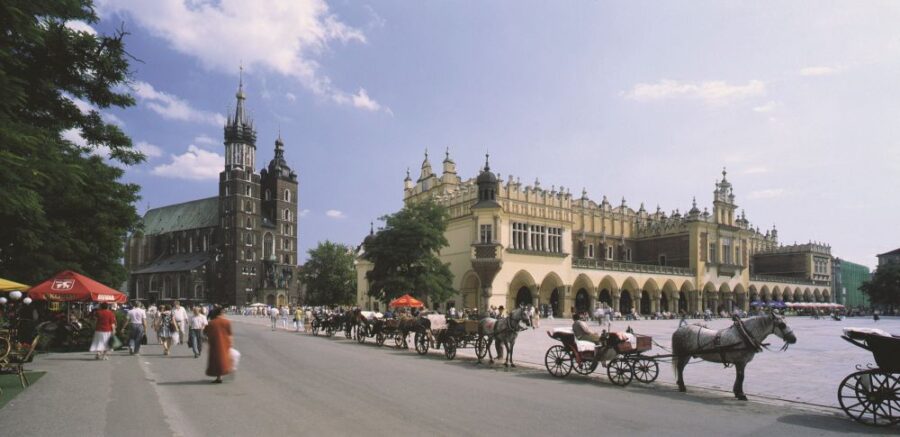 See the main city highlights, including the Marketplace, the historic Cloth Hall, and Wawel Castle (exterior view). Visit the medieval St. Mary’s Basilica (interior visit) with its wooden altarpiece carved by Veit Stoss.