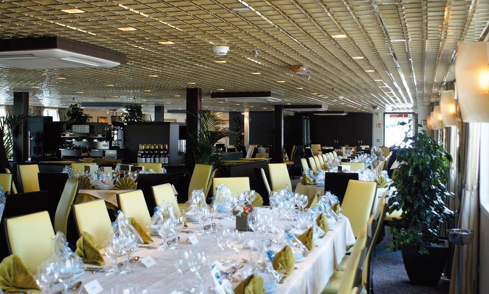 Located on the middle deck, the restaurant is where all meals are served during your cruise. It seats all guests at tables which vary in size with a panoramic view. The atmosphere is casual but elegant.