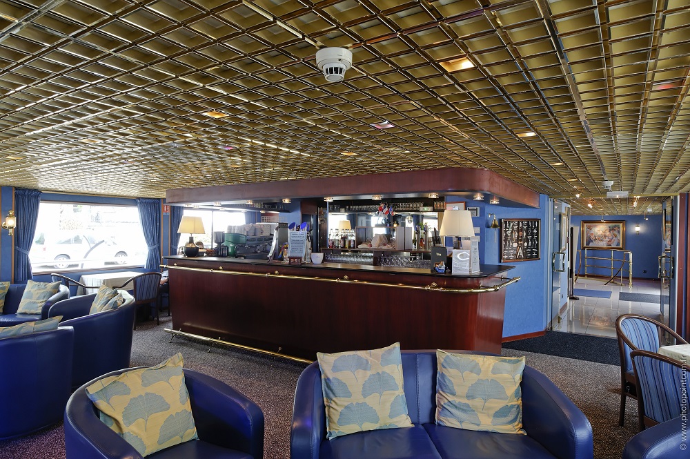 The lounge tastefully decorated, is located at the front of the ship and offers panoramic views. Cocktails and games, dancing, and other forms of entertainment all happen here.
